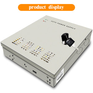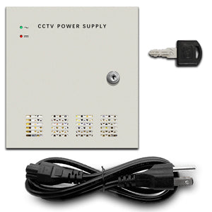 18 Caja de Alimentación para Cámaras de CCTV, Caja de Alimentación Distribuida de 12V 20A CC, Cable de Enchufe de CA y Cerradura con Llave, Salida de CA a CC para Sistema de Cámaras de Seguridad, DVR, Cámaras IP, Cámaras de CCTV