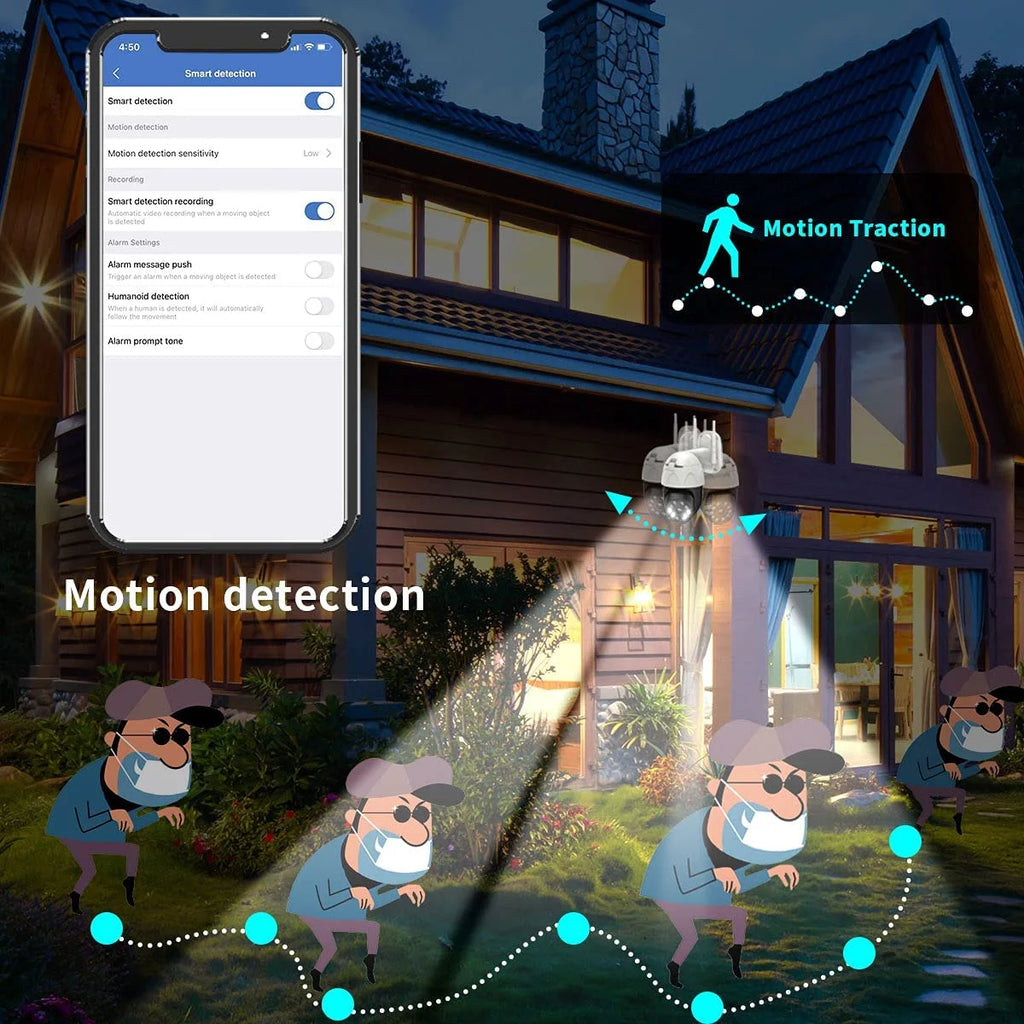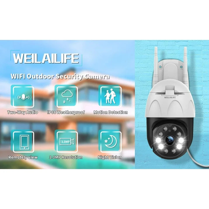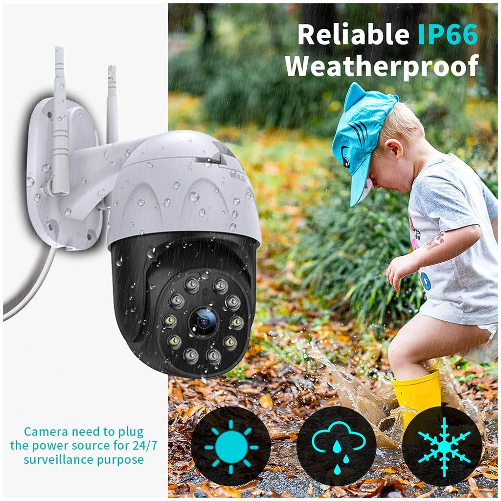 Home Outdoor PTZ Wireless Security Camera(1 Pack) Two Way Audio 3.0 Megapixel Pan Tilt WiFi Surveillance Dome Cam with Night Vision