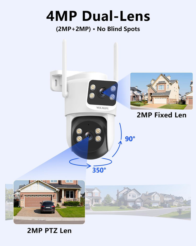 WEILAILIFE 【2-Way Audio & Auto Tracking】 4MP Extend PTZ Security Cameras Wireless Outdoor, WiFi Home Video Surveillance Camera(1 Pack)
